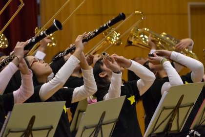 この冬一番の冷え込みでしたが、生徒たちは早朝から楽器の運搬、会場準備、リハーサルを手際よくこなし、午後1時30分の開演を迎えました。保護者や地域の方々、小学生や先輩等たくさんの方に演奏を聞いていただけることができました。