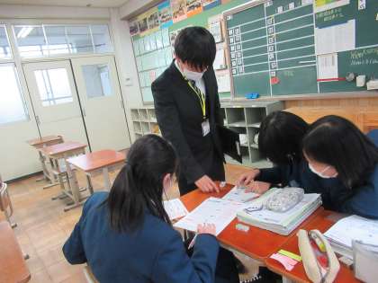 3年生は、中学校生活最後の定期テストまであと1週間です。今日から放課後学習会もスタートし、ラストスパートの時期に入りました。今日は、大学生の先生も入っていただき、和やかな雰囲気の中学ぶことができました。