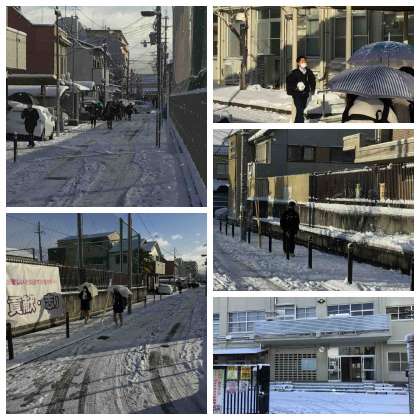 雪の影響で足下が滑りやすく、慎重に歩いている姿がありました。