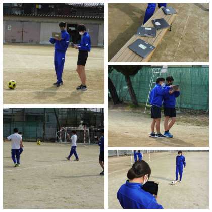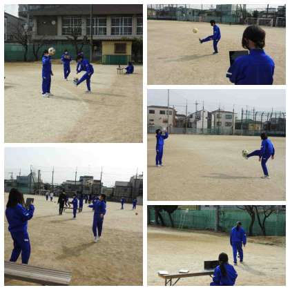 今日は2年生体育でサッカーのリフティングの様子を動画に撮り自己分析を行いました。