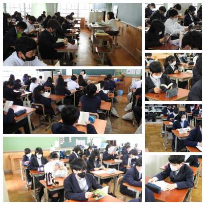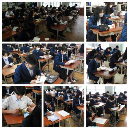 8時25分〜8時35分までの10分間ですが、全校で朝読書に取り組んでいます。
