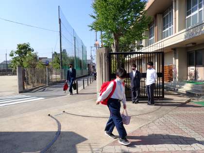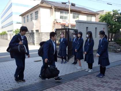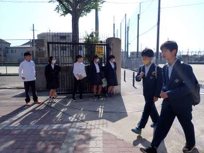 毎週火曜日は、生徒会と議員のメンバーであいさつ運動を行っています。本日も生徒会メンバーと1年生の議員のメンバーで行いました。1年生は、初めてでしたが、元気よく笑顔で取り組んでいました。あいさつで気持ちの良い雰囲気をつくっていきたいですね。