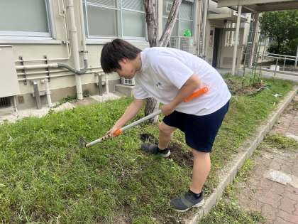 学校では、事業所がお休みの生徒たちが校内清掃に励んでくれています。