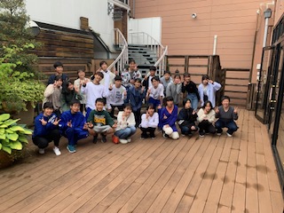 昼食を終えて、それぞれの民泊先に出発する前にクラスごとに写真撮影。