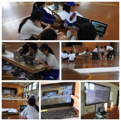 個人のGIGA端末を持ち込み、自分の動画を撮影しています。