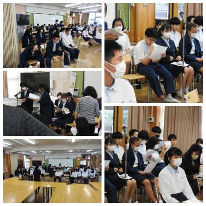 生徒会本部や各種委員会、学級代表から様々な意見が提案され、よりよい学校に成長していくことを楽しみにしています。