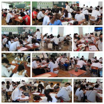 また、文化祭に向けて、各学年で「モザイクアート」が始まりました。八条校区にあるものを、モザイクで表現しています。今は、一人一人の作業ですが、完成して貼り合わせると、壮大な作品になります。