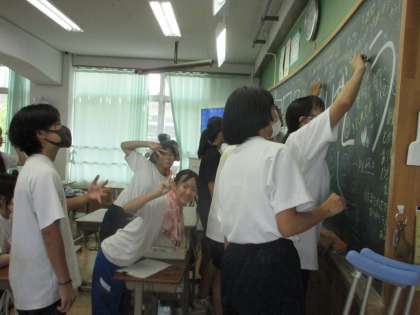 生徒たちが自主的に黒板に感謝の気持ちを書きつづって、実習生を教室に迎えていました。