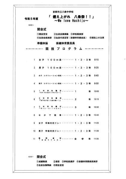 競技開始時間が記載されていますが、進行の関係で10分前後、早くなったり、遅れたりすることもあります。時間に余裕を持って来場お願いします。