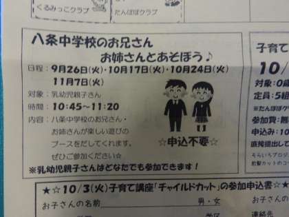 児童館の「にじいろ通信」に保育実習のお知らせが掲載されていました。