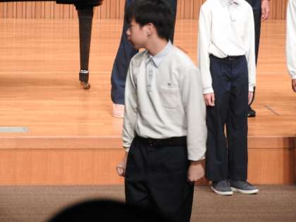 表現力豊かな指揮はクラスの合唱をリードしていました。