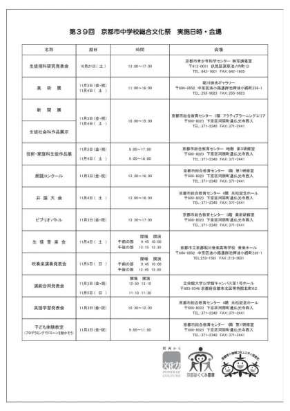 令和5年10月21日(土)〜11月5日(日)に第39回京都市中学校総合文化祭が開催されます。