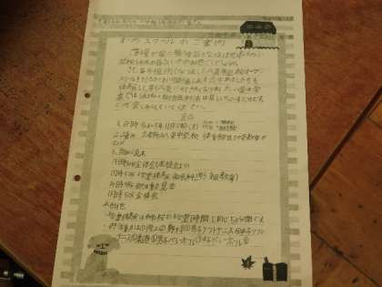 国語の授業で来月に行われるオープンキャンパスの招待状を小学生に向けて作成しています。