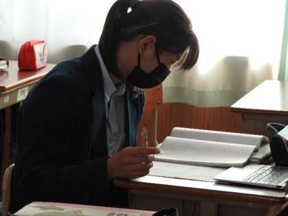 3年1組のMさん。今日は数学の授業で「証明」の勉強をしていました。難問にも粘り強く取り組んでいました。また、Mさんは今夏、柔道で全国大会にも出場しました。文武両道の姿に「きらり☆」ですね。