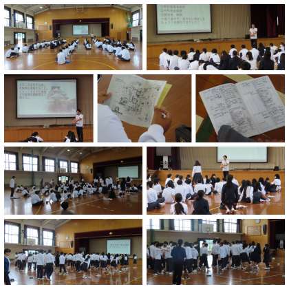 明日の校外学習に向けて、1年生で事前指導を行いました。