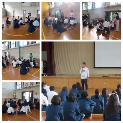 明日の校外学習に向けて、2年生で事前指導が行われました。