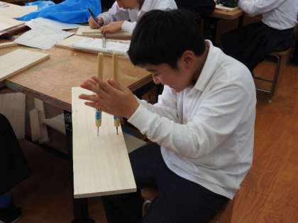 1年2組のNさんは技術の時間、木工作業を行っていて、キリを2本使って作業を行っていました。起用にキリを扱っていました。そんな姿に「きらり☆」ですね。