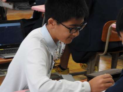 数学の授業で☆形の内角を調べる学習があり、2年1組のIさんは、課題を見るなり、超スピードで回答をコンプリートしていました。また、自分の解いた方法を友達に教えるなど教え方もとてもうまかったです。「きらり☆」ですね。