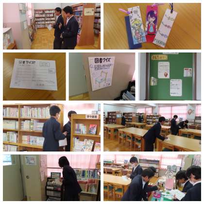 昼休みに、図書室で「図書クイズ」が行われています。