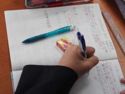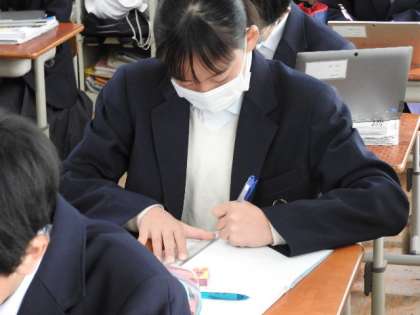 1年2組のAさん。国語のノート整理がとてもきれいでした。はっきり文字が書かれていて非常に見やすかったです。来週はテスト、ノートを活用して高得点を目指してください。「きらり☆」です。