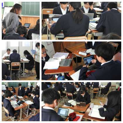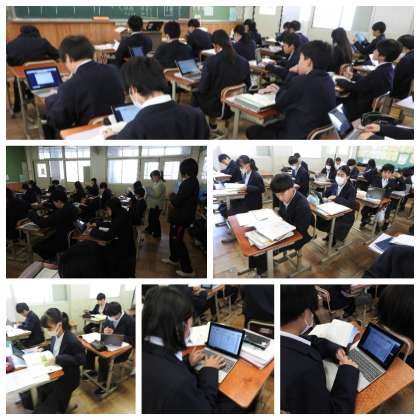 国語の授業ではロイロノートを活用し、自分の意見の入力や意見交流を行いました。