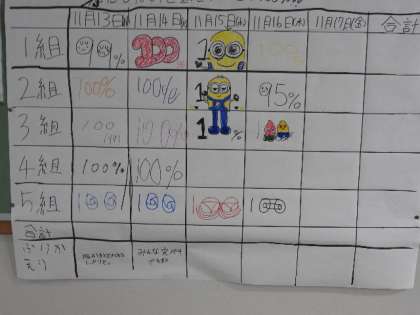 100%を達成したクラスも多く。意識の高さに「きらり☆」ですね。