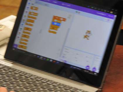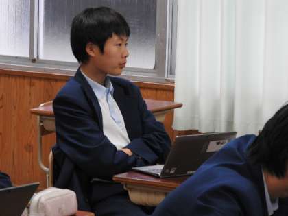 3年1組のIさん。技術の授業でスクラッチというソフトを使い、プログラミングの授業を行っていました。上手にプログラムを組み立て、ゲームを作成していました。「きらり☆」ですね。さらにパワーUPを期待しています。