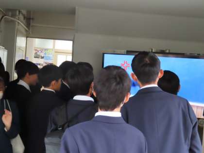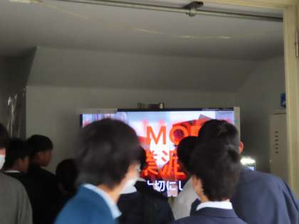 休み時間や放課後には、モニターの前で足を止めて、それぞれのクラスや学年などで作られた作品を観ています。