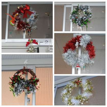 各学級、文化委員の人たちがクリスマスリースを作成してくれました。