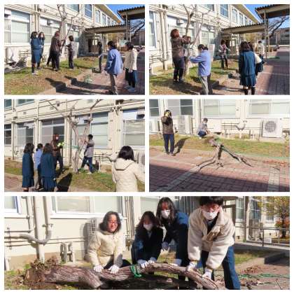 育成学級では、中庭にある木を取り除く作業をしてくれました。