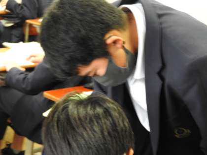 1年2組のOさんは理科の授業で出された問題を早々に回答し、友達に親切に教えていました。教えることは学ぶこと。「きらり☆」ですね。