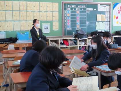 今日は1年生に入り、授業のサポート等をしてくれています。