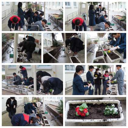 卒業式に向けて、1・2年生の生活環境委員がプランターの整備をしてくれていました。