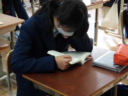 3年1組のOさん受験を目前に控えていますが、毎日の朝読書の時間は本に向き合っています。日々受験勉強が大変だと思いますが、普段通りの習慣を崩さないことが大切ですね。