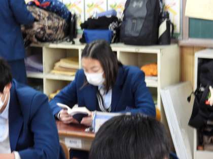3年3組のSさん。受験を目前に控えていますが、朝読書の時間もしっかりできています。また、登校時は毎朝挨拶をしてくれます。そのあいさつで元気をもらっています。「きらり☆」ですね。