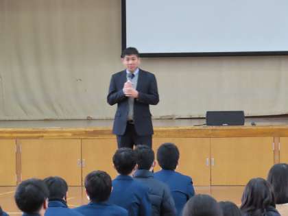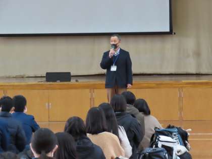 集会では、校長先生から激励の言葉、進路担当から受験の諸注意、学年主任からまとめの話がありました。