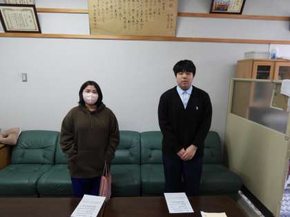 昨日、3年4組の人たち2年1組の人たちが校長室に訪問してくれました。