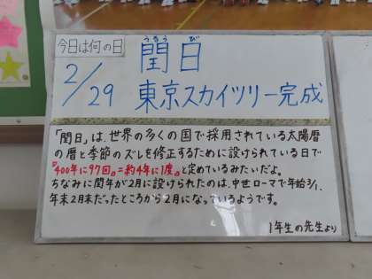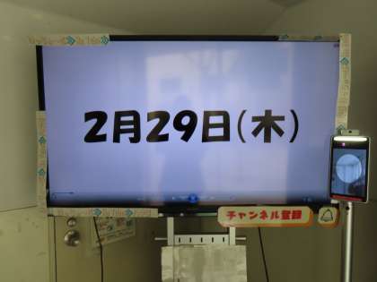職員室や北校舎入口のモニター、北校舎の2〜3階の踊り場にも、「2月29日」の文字が紹介されています。