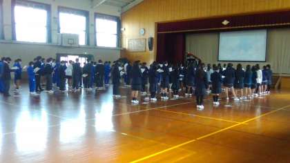 来週水曜日にある、”3年生を送る会”に向けて、各学年、練習を重ねています。今日は1年生が体育館で練習していました。本番まであと1週間。1・2年生は3年生に感謝の気持ちを伝えられて、3年生が気持ちよく卒業できるような会になるように、頑張りましょう。