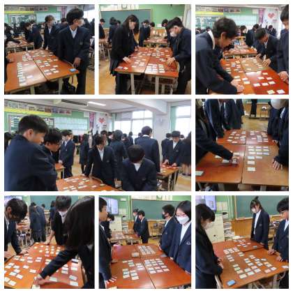 1年生では「百人一首大会」に向けて、各クラスで練習を行っています。
