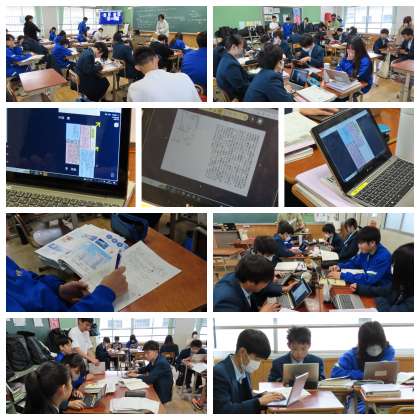 国語では、ロイロノートを活用しながら各自が記事を担当して、「新聞」という形でまとめ作業を行っていました。