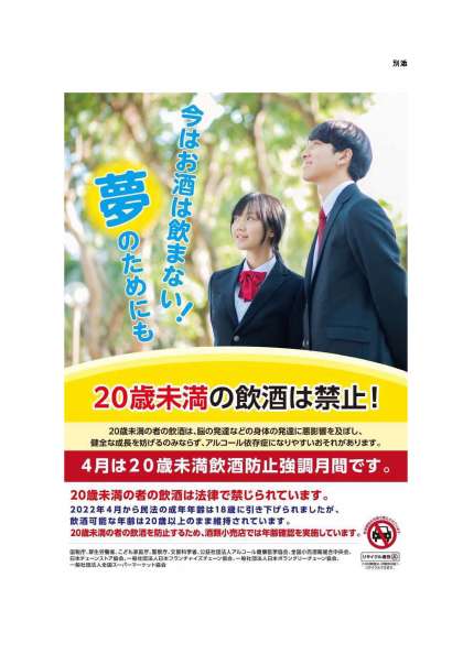 未成年飲酒禁止啓発ポスターです。