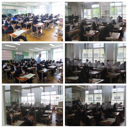 1年生にとっては、中学校生活初めてのテストですね。少し緊張した表情ですが、最後まで一生懸命取り組む姿が印象的でした。