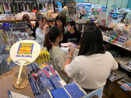 レクリエーションが終わり売店でお土産探しをしています。