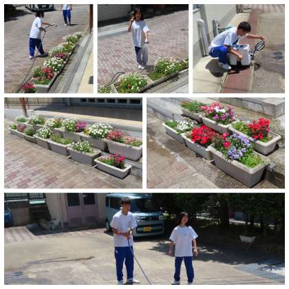 昼休みは、生活環境委員の人たちがプランターの花に水やりをしてくれています。