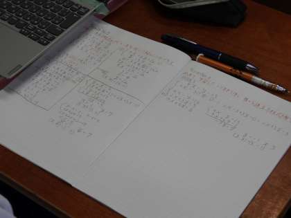 本日、数学の授業を参観しました。2年3組のHさんは丁寧にノートを整理し、記入していました。