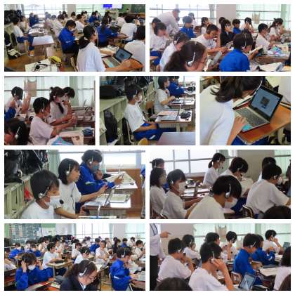 1年生英語では「学習アクセラレータ」を使って、英語の音読に取り組んでいました。