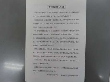 より良い八条中学校にするために、一人一人が協力していきましょう。