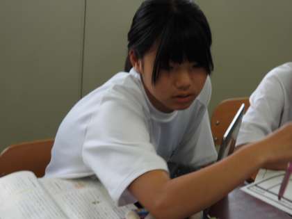 1年1組のEさん。国語の授業で対話活動を行っているとき、課題につまづいている人にやさしく教えてあげていました。教えることは学ぶこと「きらり☆」ですね。