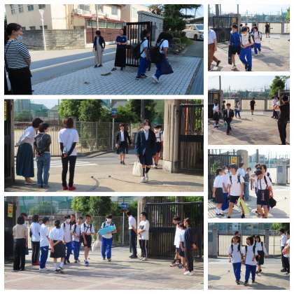 朝の日差しが少しずつ強くなり、今日も暑い一日になりそうです。元気なあいさつで、一日を元気に過ごしましょう。